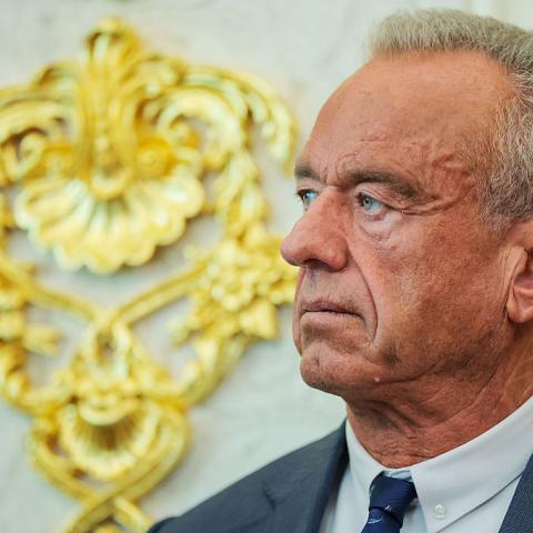 Health Secretary Robert F. Kennedy Jr., flanked by Food and Drug Administration Commissioner Dr. Marty Makary, Centers for Medicare & Medicaid Services Dr. Mehmet Oz, and Agriculture Secretary Brooke …
